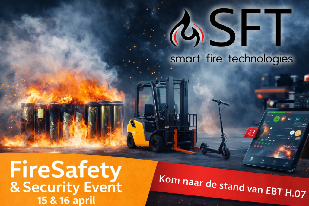 Op 15 en 16 april zijn wij aanwezig op het FireSafety & Security Event in de Brabanthallen. Tijdens deze beurs is ook Smart Fire Technologies aanwezig (in stand H.07 van EBT), specialist in brandveiligheid rondom lithium-ion accupacks van mobiele assets.