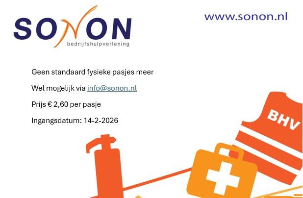 Tot op heden hebben wij bij SONON na iedere cursus voor iedere deelnemer een fysiek BHV-pasje gemaakt en geleverd. Dit was jarenlang de standaard.